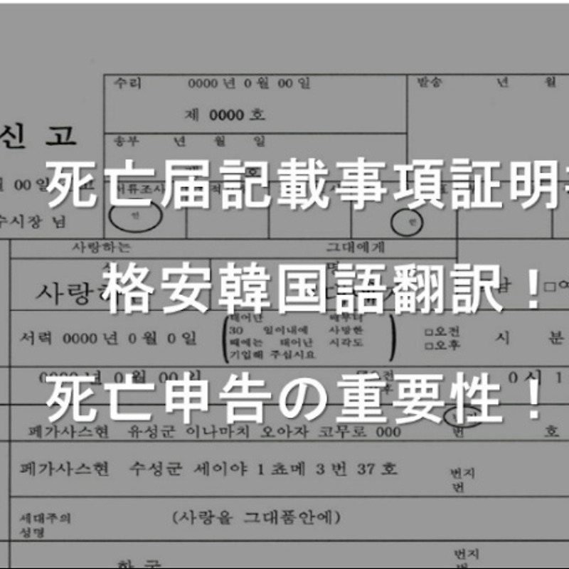 ■特別永住者の韓国大使館・領事館への死亡申告は重要です。! 日本で生まれた韓国国籍の方は、 死亡した時点で国籍が韓国である場合、 韓国側に死亡申告をしないと、日本国内での相続手続きが開始されません。 韓国語が分からないから、放置する場合もありますが、 韓国国籍の方が亡くなったにもかかわらず、放置しておくと、 手続きがもっと複雑になるため、韓国国籍の方が亡くなった時には、 日本・韓国両国に死亡届を迅速に提出しなければなりません。 韓国側への死亡申告は、死亡後、3か月以内にしなければなりません。 万が一、死亡申告をしない場合は、別途、住民票と訳文が必要となります。 また、手続きも、死亡申告ではなく、「戸籍整理」手続きになる場合もありますので、 手続きが複雑になる前に事前に予防する必要があります。 ■韓国側に死亡申告をしないと次も問題が発生します。 韓国国籍の方が亡くなった場合は、死亡申告を..